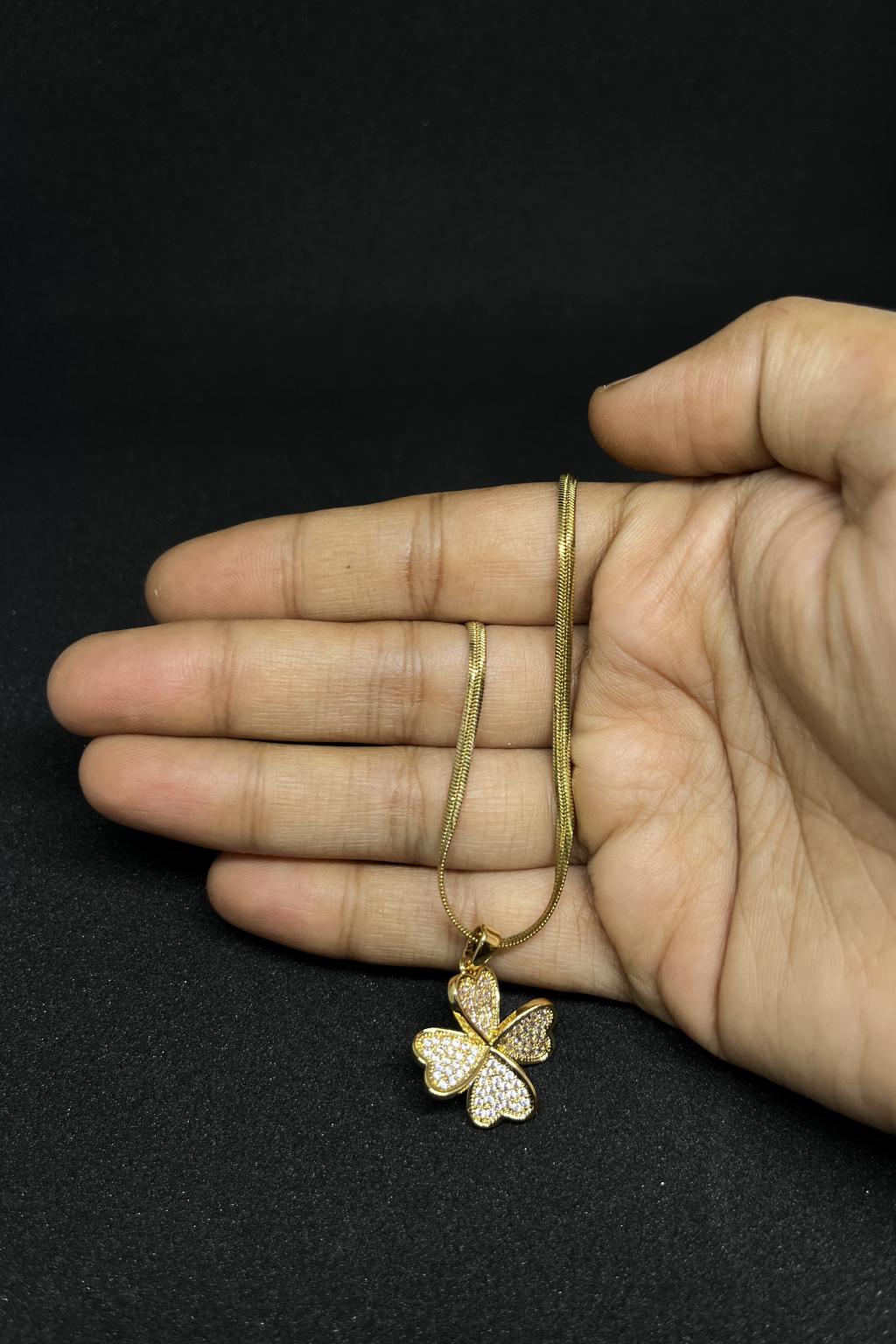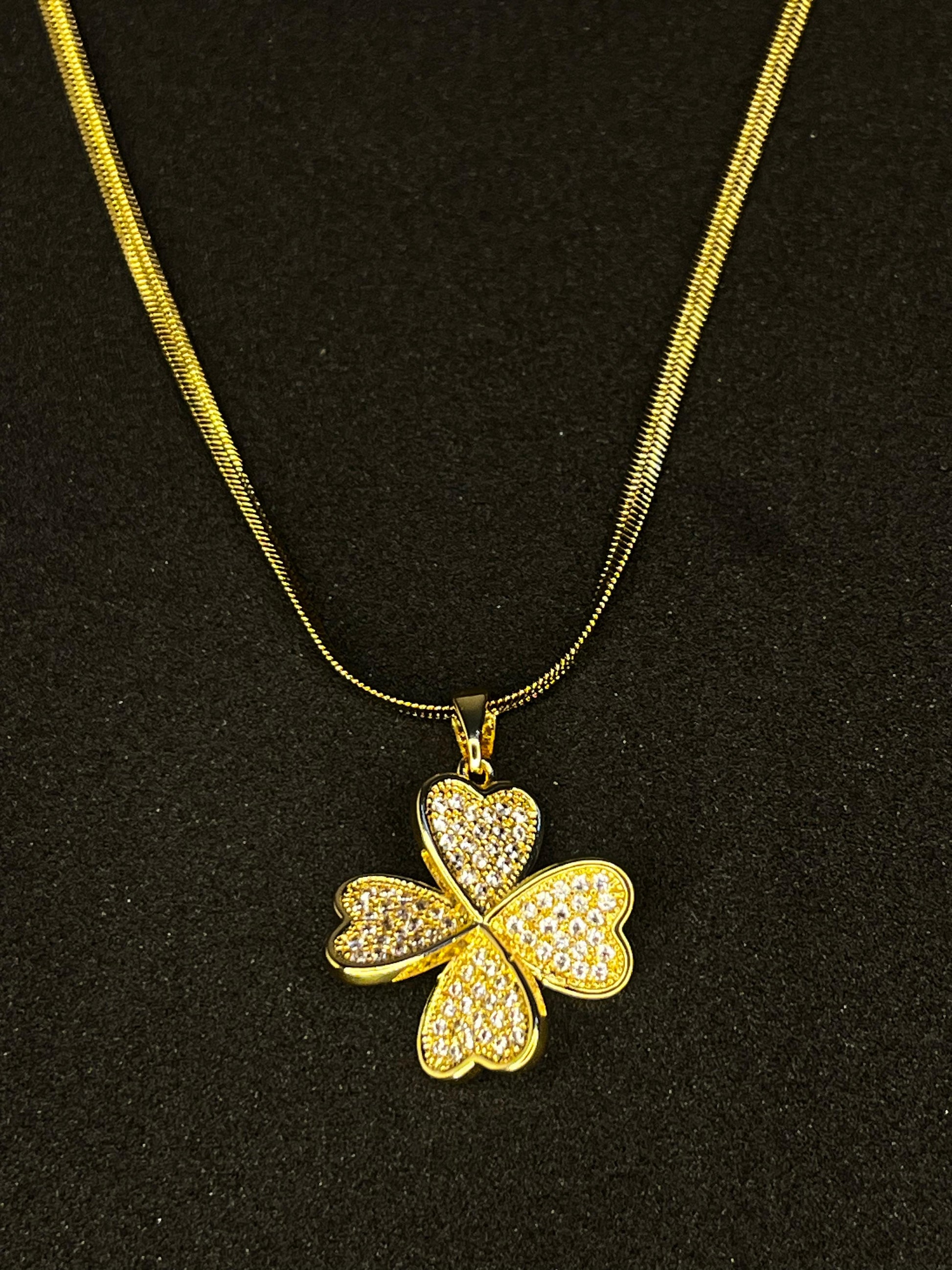 "Elevate your elegance with the Black Clover pendant & earring Set, a timeless blend of sophistication and charm. Featuring a lustrous gold chain with a bold black onyx clover pendant and matching stud earrings, this set is designed to capture attention. The delicate beaded gold border enhances the richness of the design, while the deep black center symbolizes strength and grace. Perfect for both everyday wear and special occasions, this set adds a touch of refined luxury to any outfit.