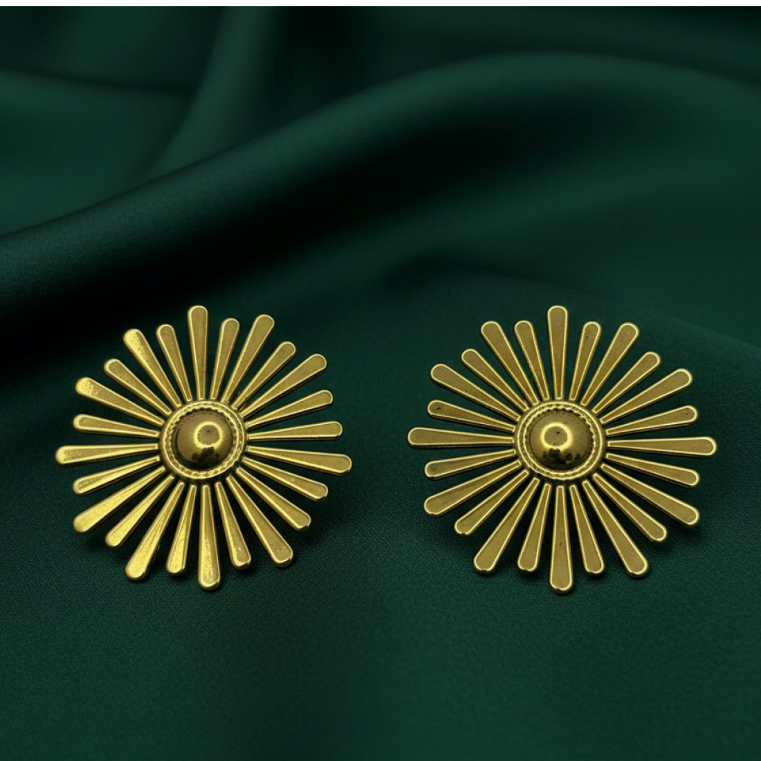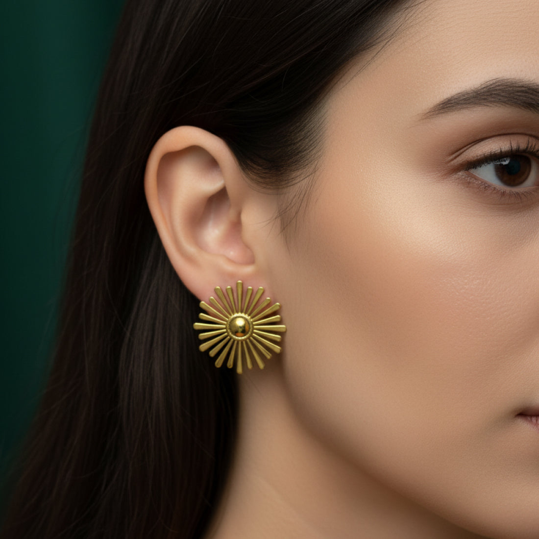 The Golden Sunburst Earrings are a bold statement of elegance and power, inspired by the brilliance of the rising sun. Crafted in a radiant golden finish, their striking design symbolizes energy, positivity, and confidence. Lightweight yet impactful, these earrings are perfect for elevating both traditional and modern looks, making them an eye-catching addition to any jewelry collection.