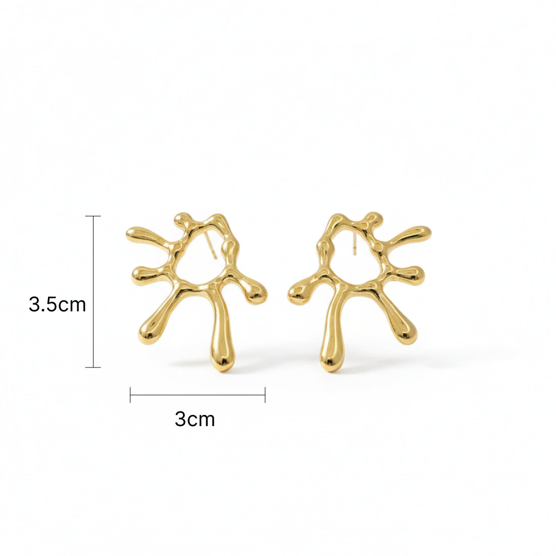 A bold statement in contemporary jewelry. Crafted with a high-polish gold finish, these abstract splash-shaped earrings capture the fluidity of molten metal and the elegance of modern art. Lightweight yet striking, they are perfect for elevating both casual and festive looks.